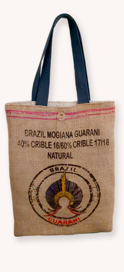 Confeccionado artesanalmente en tela de saco de café, seleccionada por su resistencia y textura natural. El frente conserva las inscripciones originales del saco, que indican el origen y características del café, aportando autenticidad y un valor distintivo a la pieza.