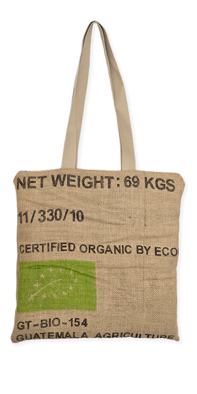 Confeccionado artesanalmente en tela de saco de café, reutilizada y seleccionada por su resistencia y acabado natural.