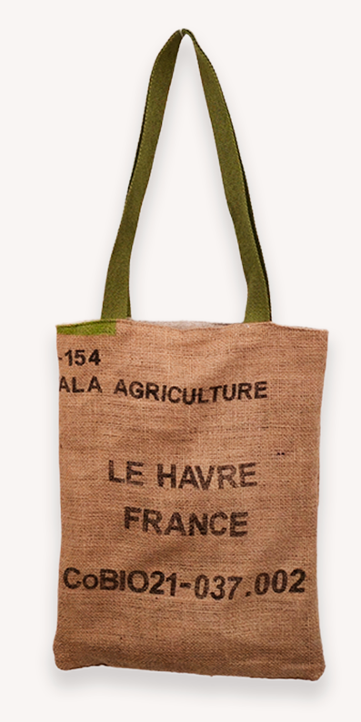 Confeccionado artesanalmente en tela de saco de café, reutilizada y seleccionada por su resistencia y textura natural.