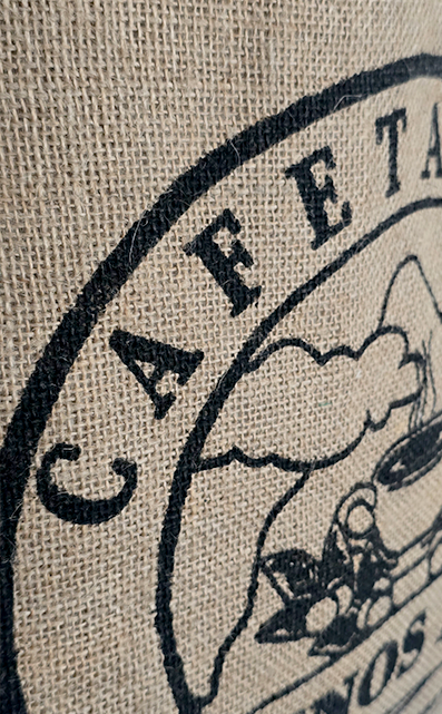 Confeccionado artesanalmente en tela de saco de café, reutilizada y tratada para ofrecer resistencia y durabilidad.